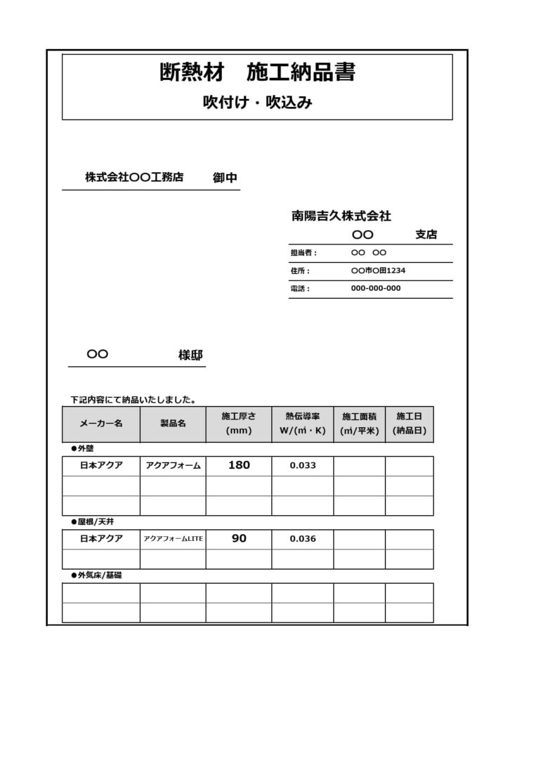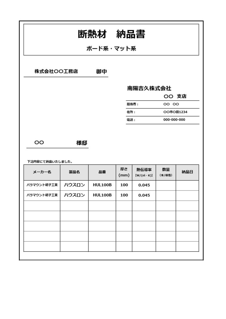 当サイトから建材を購入した方は下記様式で対応できますのでご安心ください。下記がサンプルです。