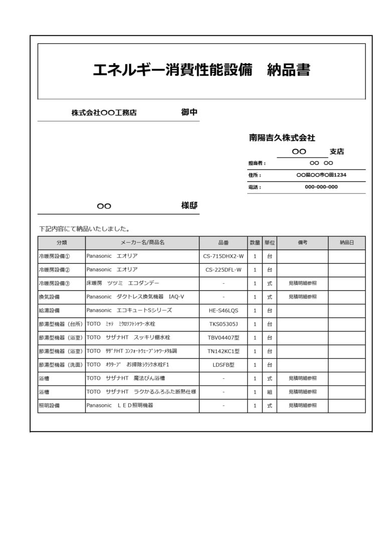 高断熱浴槽や節湯水栓は現地での目視確認しにくいと思います。単なる「一式」の納品書ではなく、