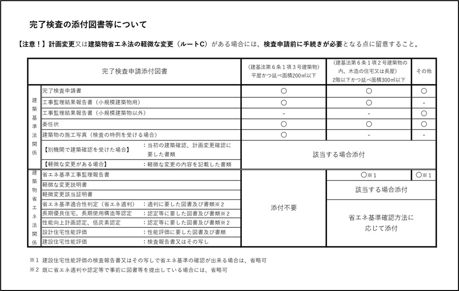 下記は石川県のホームページで公開されている、完了検査の提出物についての案内資料です。