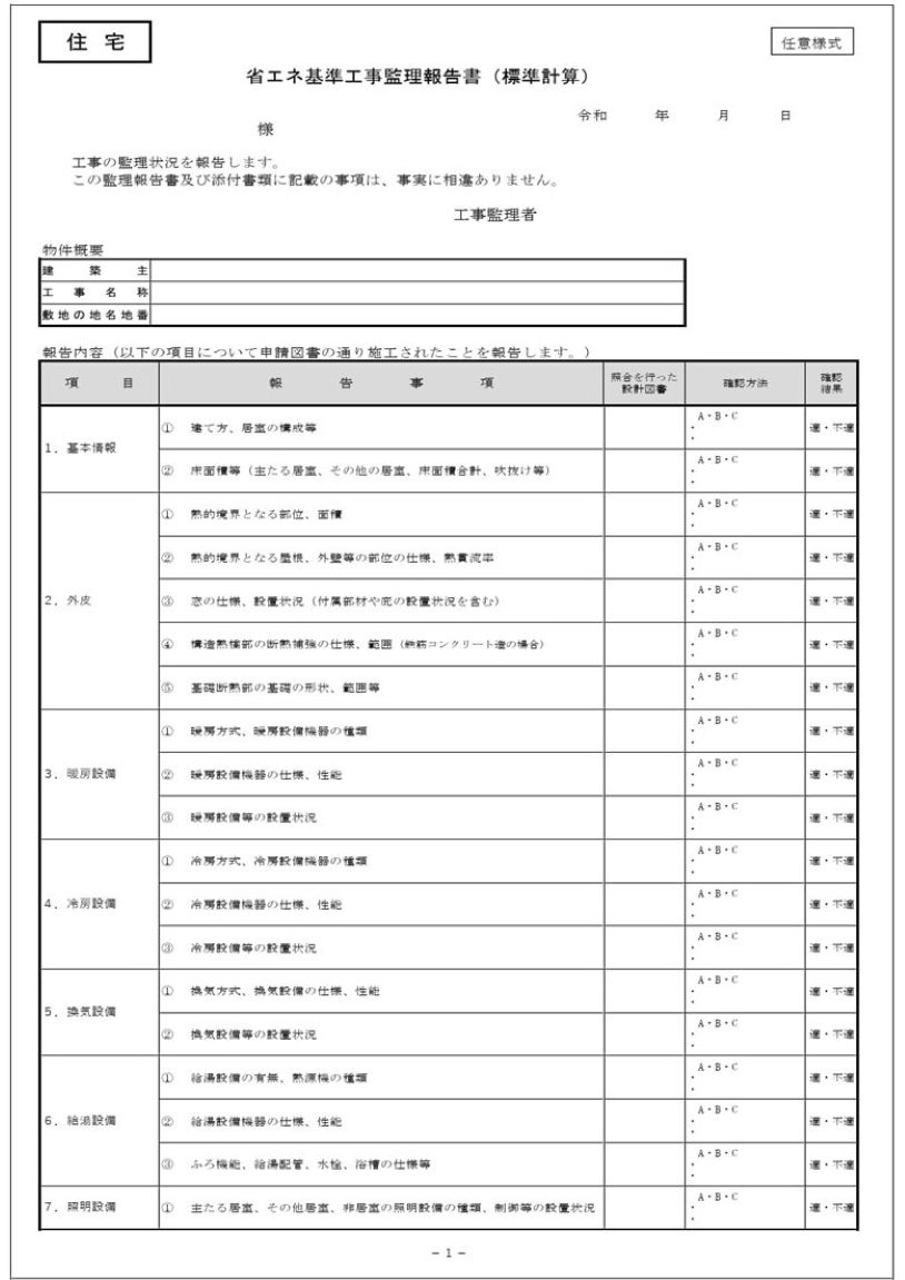 サンプルとして省エネ用の工事監理報告書(標準計算用)を例示します。