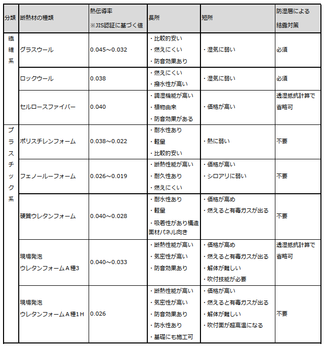 ※熱伝導率(W/m・K)・・・値が小さいほど断熱性能が高い