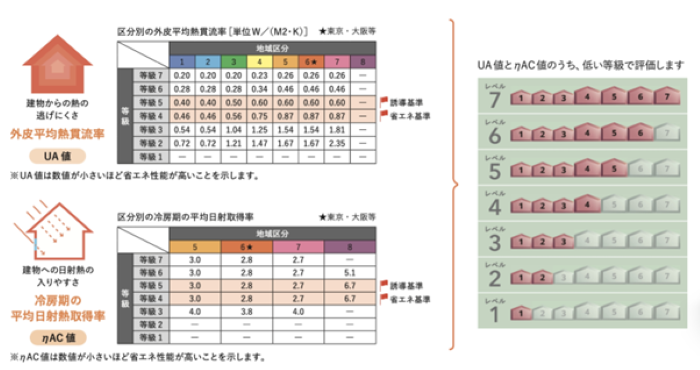 平成12年に創設された住宅性能評価制度では、住宅の温熱環境を評価項目として「断熱等級」があります。